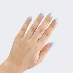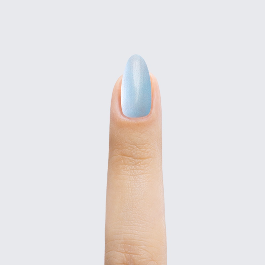 Baby blue. Pastel. Pearl finish. Opaque. Cool undertone.