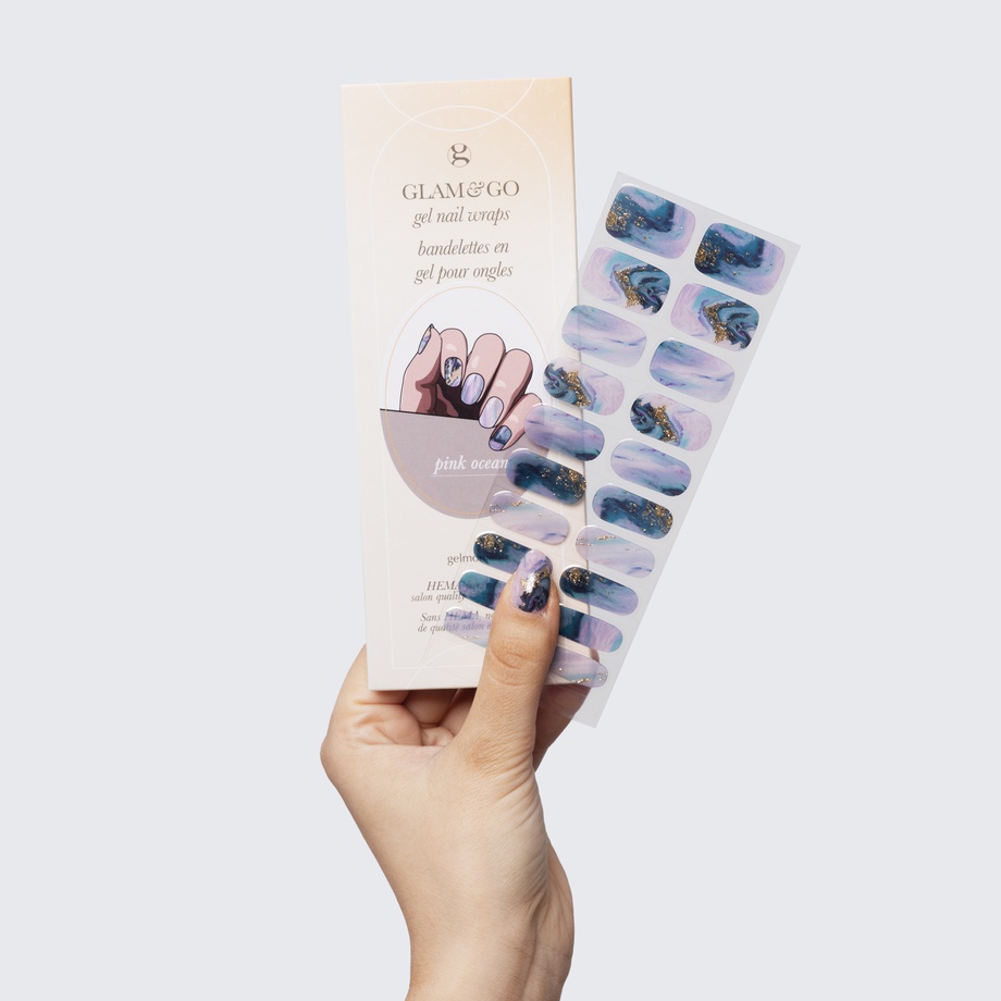 Our GLAM & GO gel nail wraps ensure that no matter how complex your chosen nail design, the application process remains incredibly simple. Our GLAM & GO gel nail wraps require no glue, base coat, or top coat—just peel them off the packaging, apply them to your nail, trim to size, cure twice, and voilà!